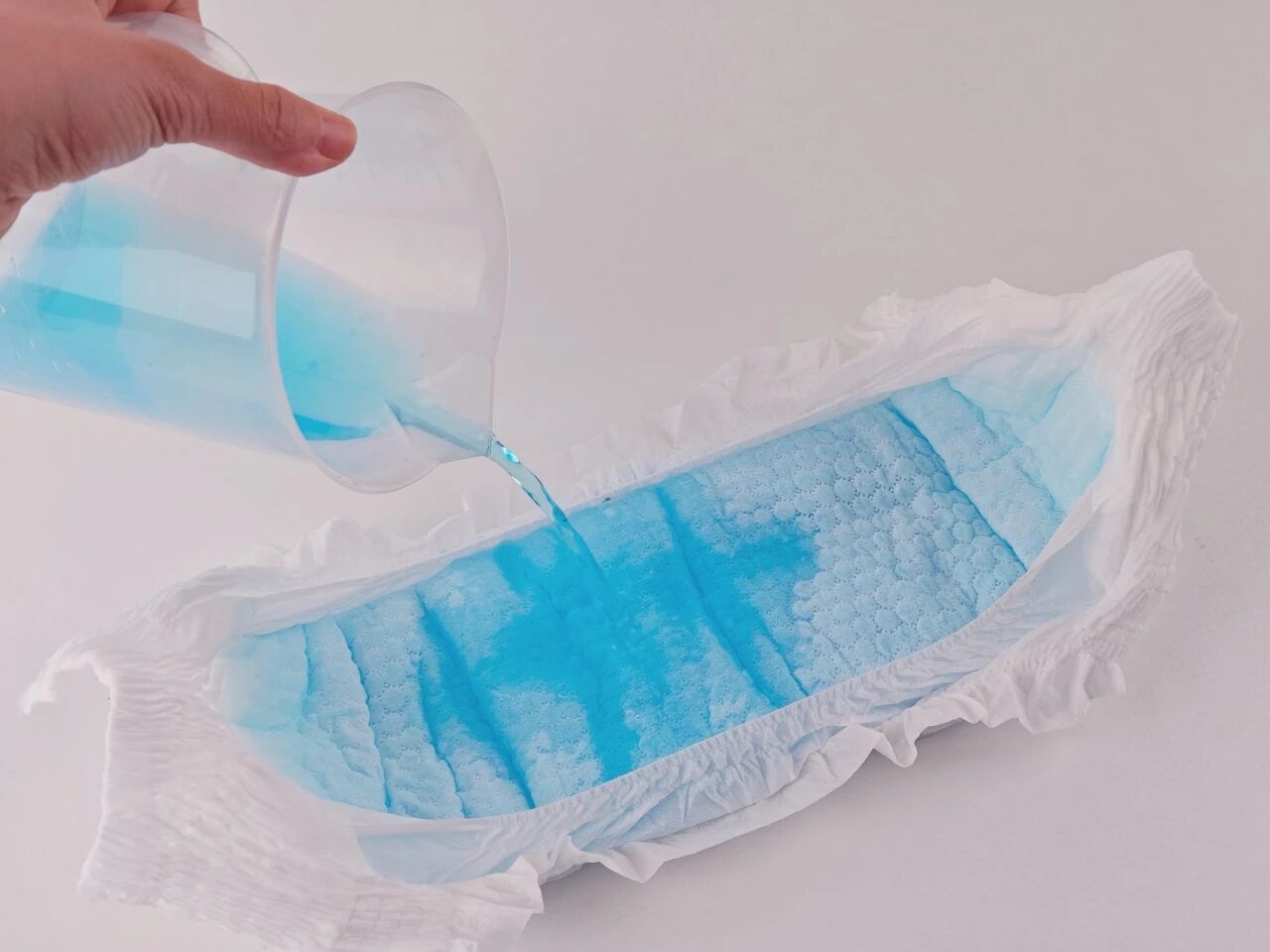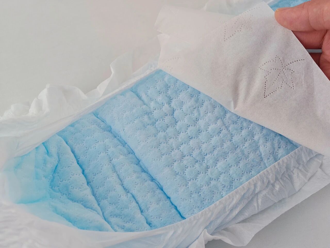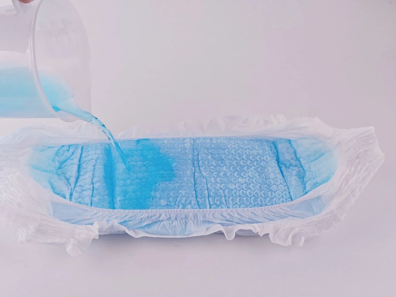 Cuando se vierten uniformemente 600 ml de orina simulada (equivalente a aproximadamente 8-10 micciones de un bebé) en el producto, la superficie permanece seca, lo que significa que una sola pieza puede satisfacer las necesidades del bebé durante el uso nocturno prolongado.